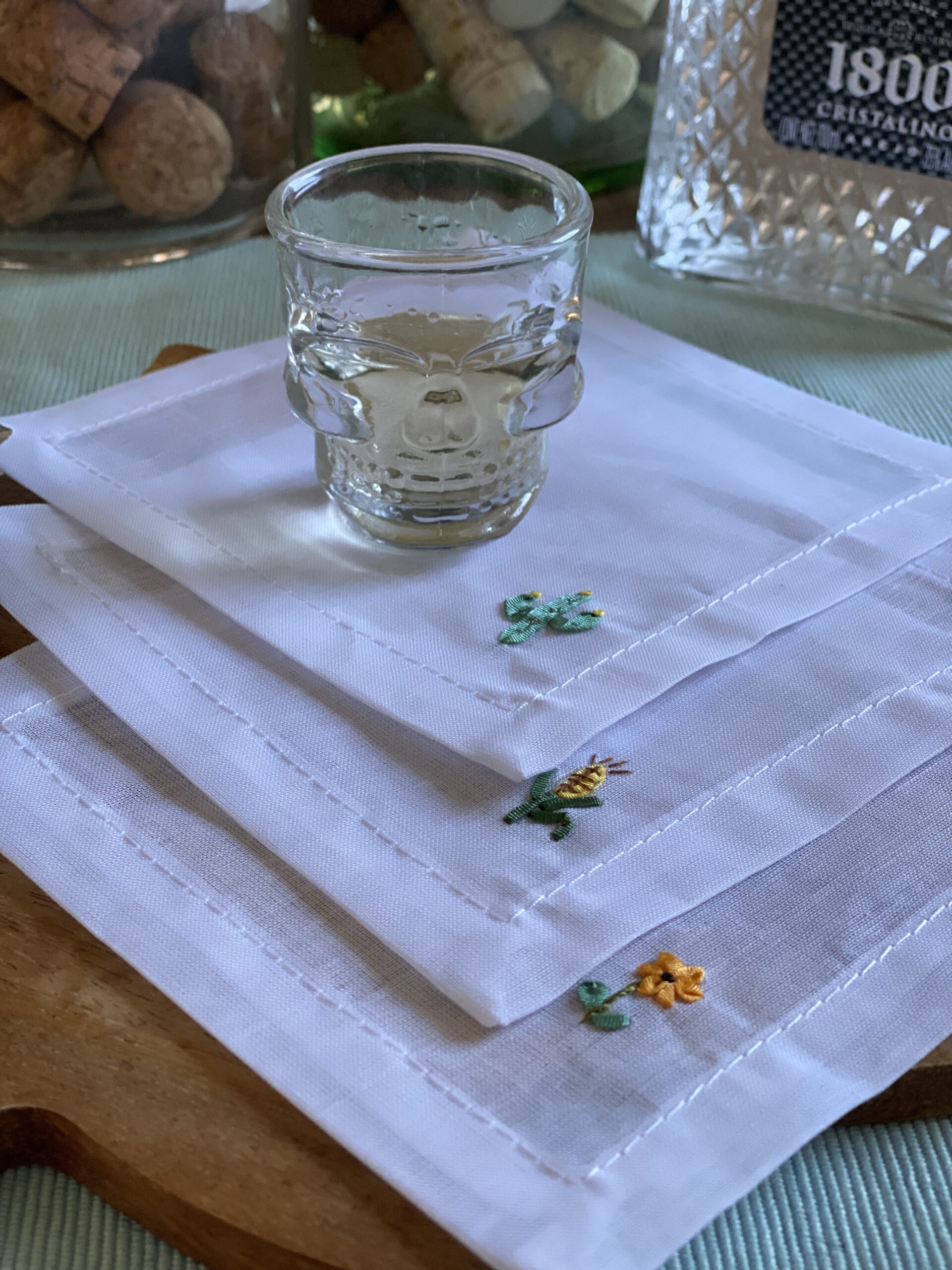 These super cute cup holders were created with a lot of patience and precision. As you can notice, each one has a very small embroidery on it, with different shapes, such as the agave cactus, corn, sunflower, and other shapes that represent the region of the Artisan where was created.