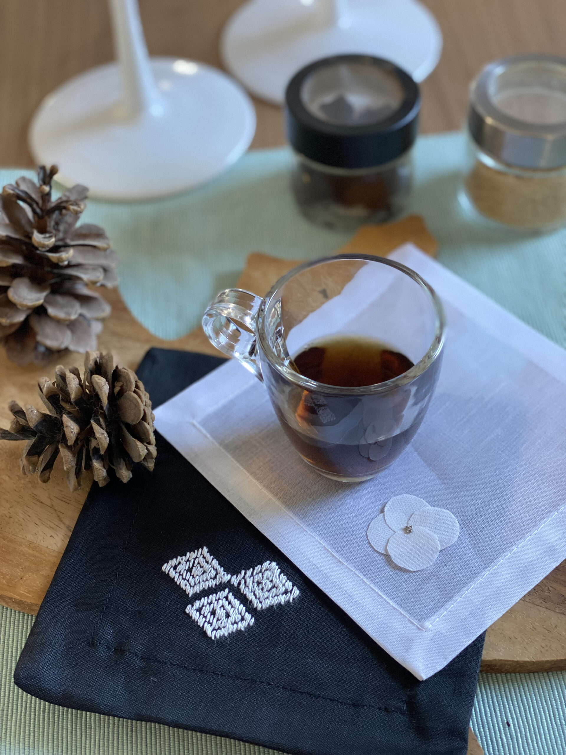 All of these cup holders have a delicate linen base, making them a high quality and unique piece.