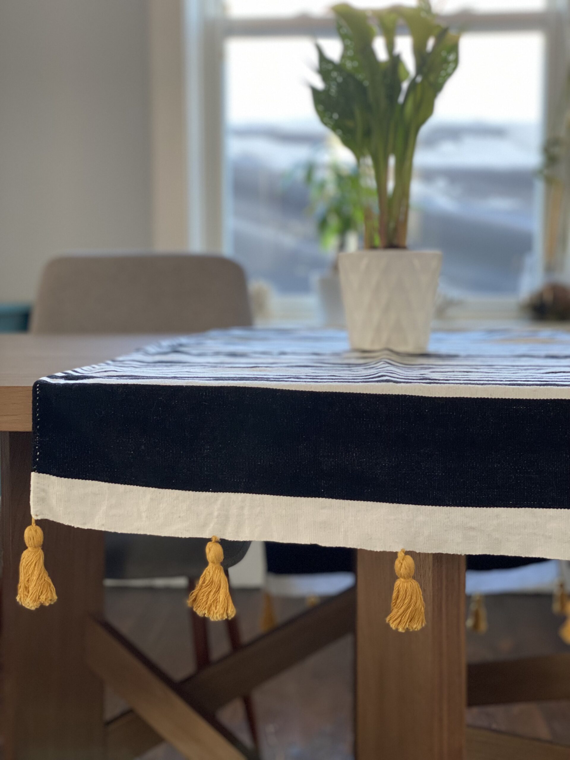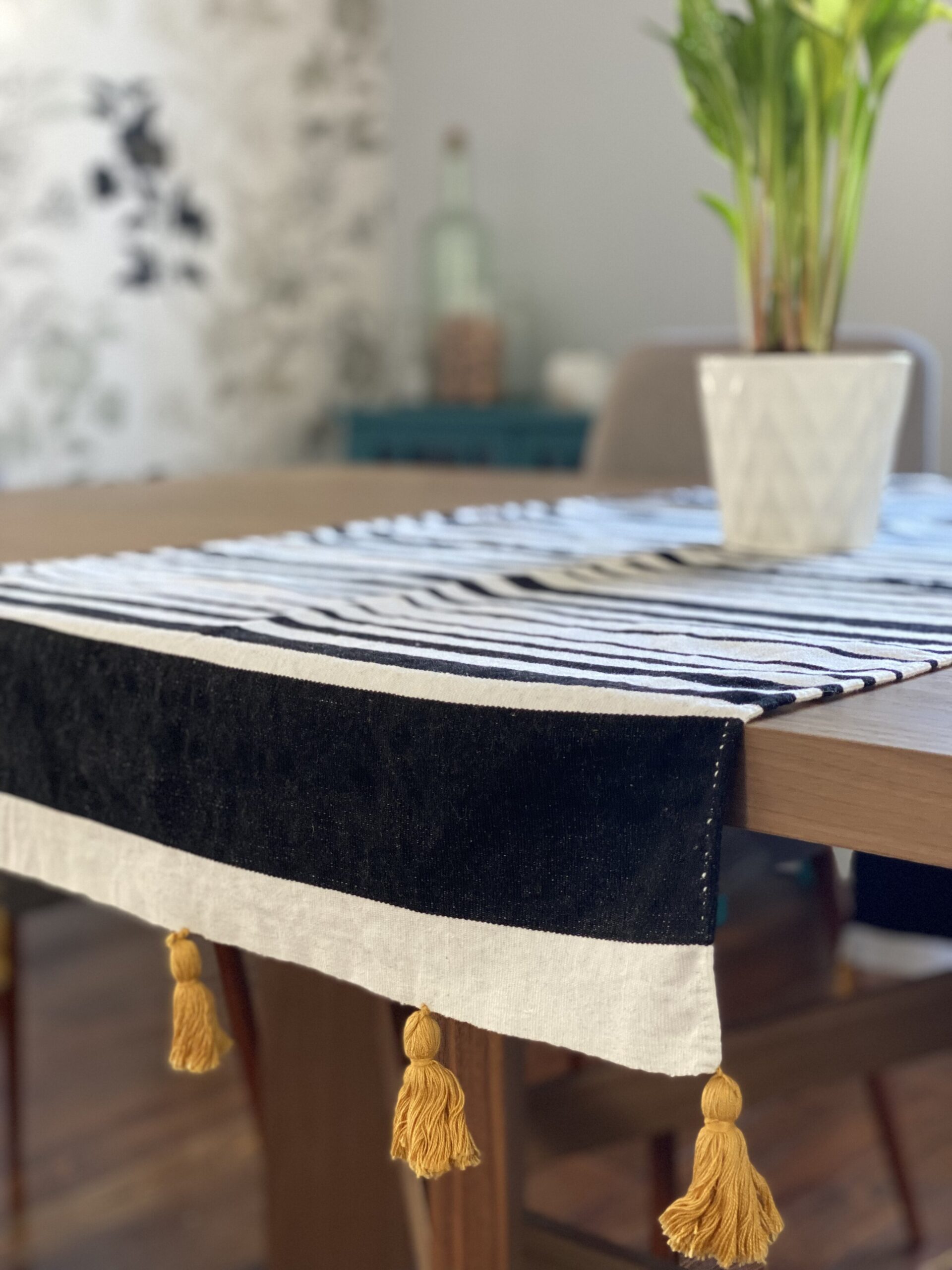 This Minimalist table runner will decorate beautifully any space you decide to play with. Its simple design with bold style will add a unique touch of character, the “Elegance with Simplicity” look to your table.