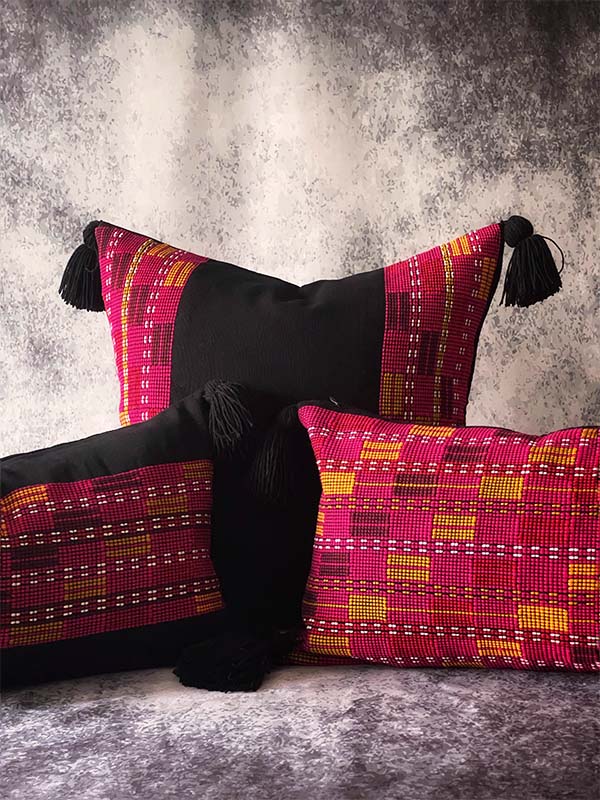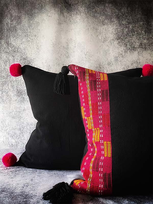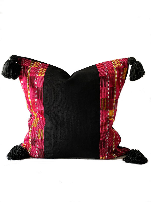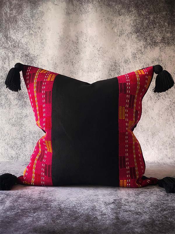 This stunning pillow has a sophisticated handwoven pattern on the sides that represents the traditional artisanal clothing of the Tzetzal culture originally from Chiapas, bringing an exotic boho glam look to your home decor.