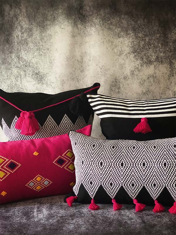 This beautiful black & white pillow has a  detailed strip of lines that could be placed upside down. Its versatile design gives the opportunity to play with diverse ways of placing it to layering up your sofa decoration in many ways.