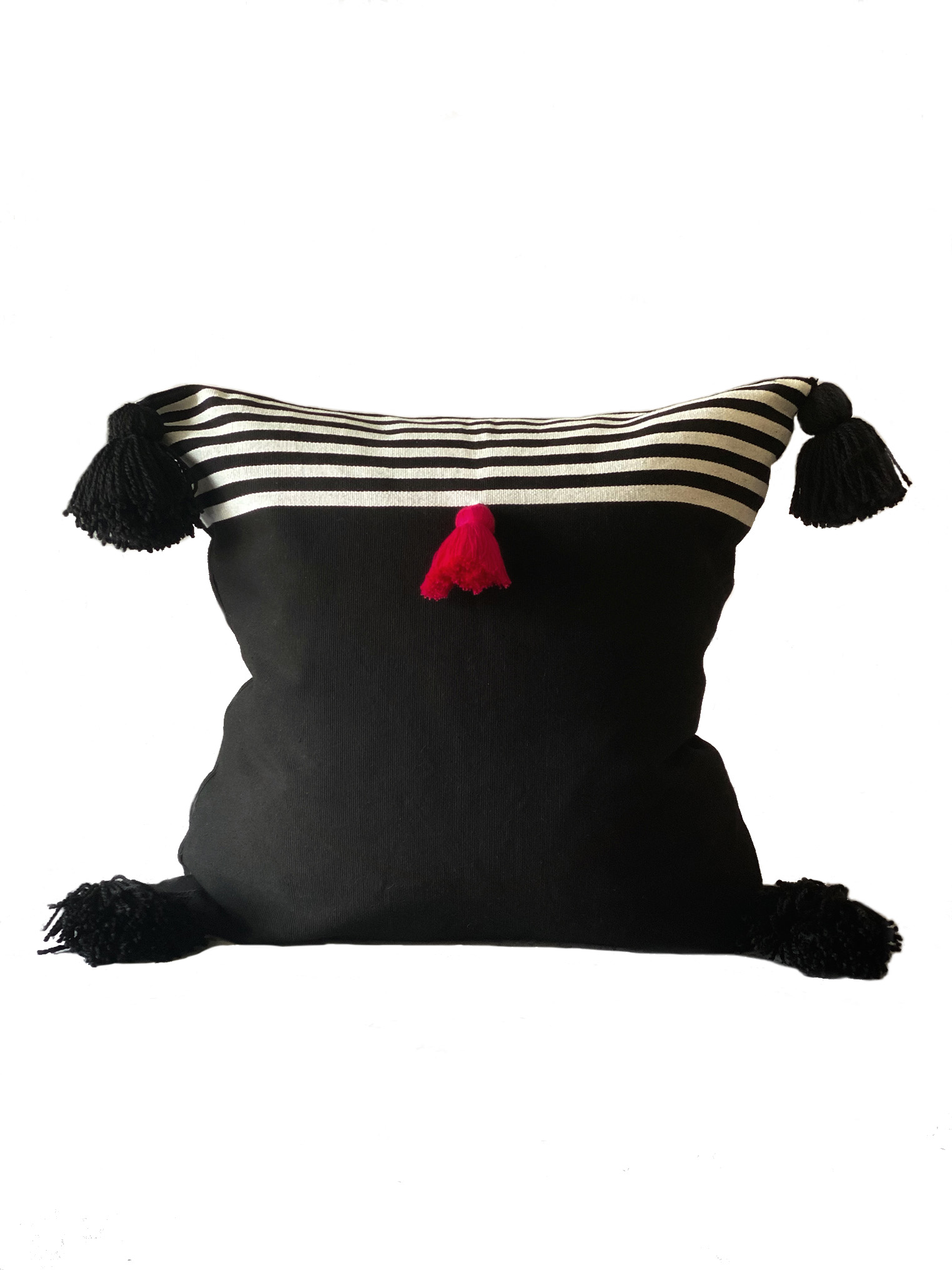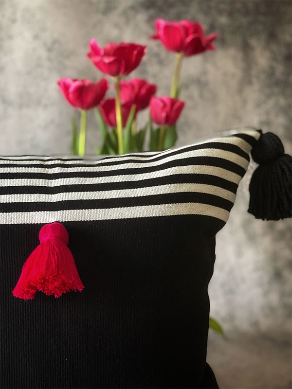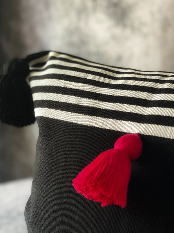 The fabric of Damián is hand-loomed transforming an iconic stripe pillow into an elevated piece of beauty!  Its cute little pink handmade tassel in the middle gives an interesting color accent to give a more appealing look to the minimalist look.