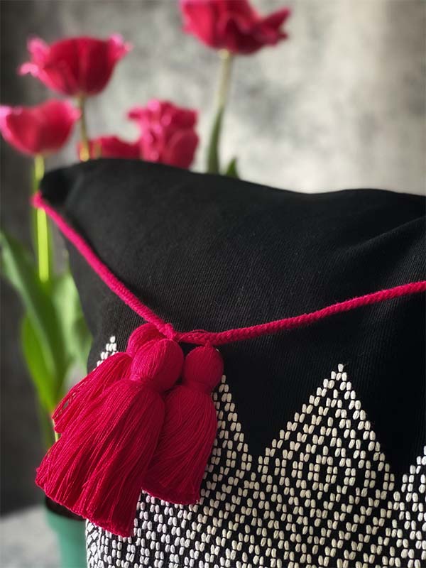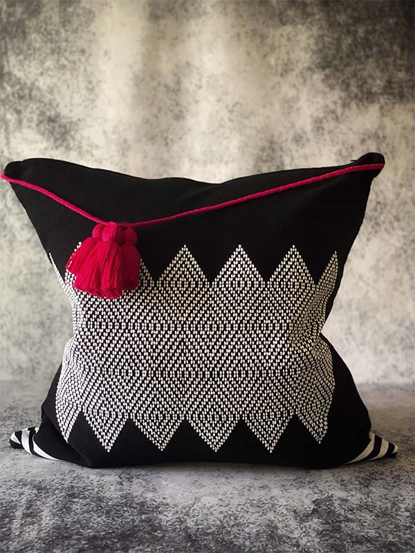 Also, the fabric of the pillow is manually weaved from scratch using the backstrap loom technique.