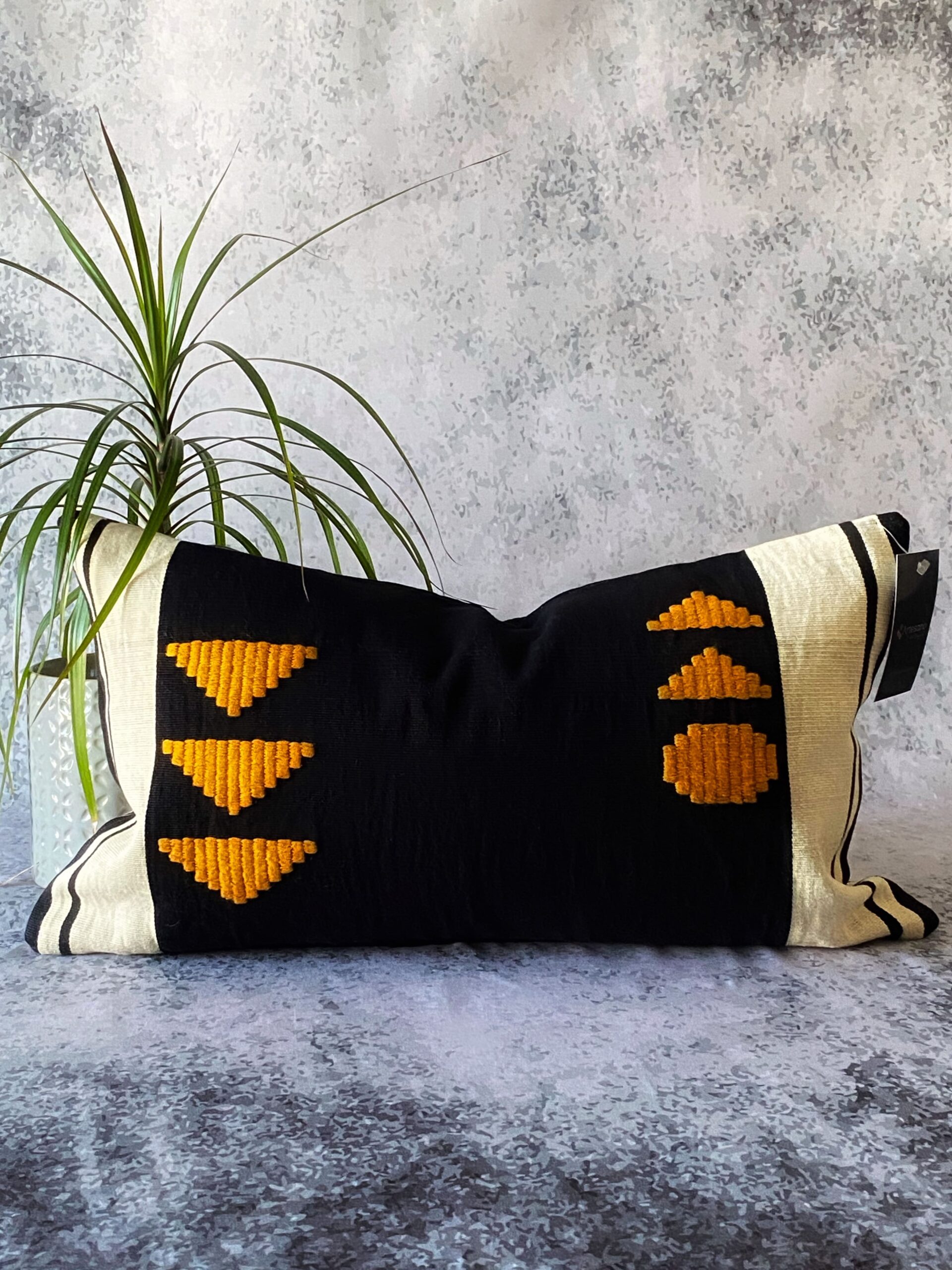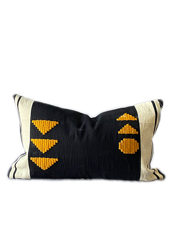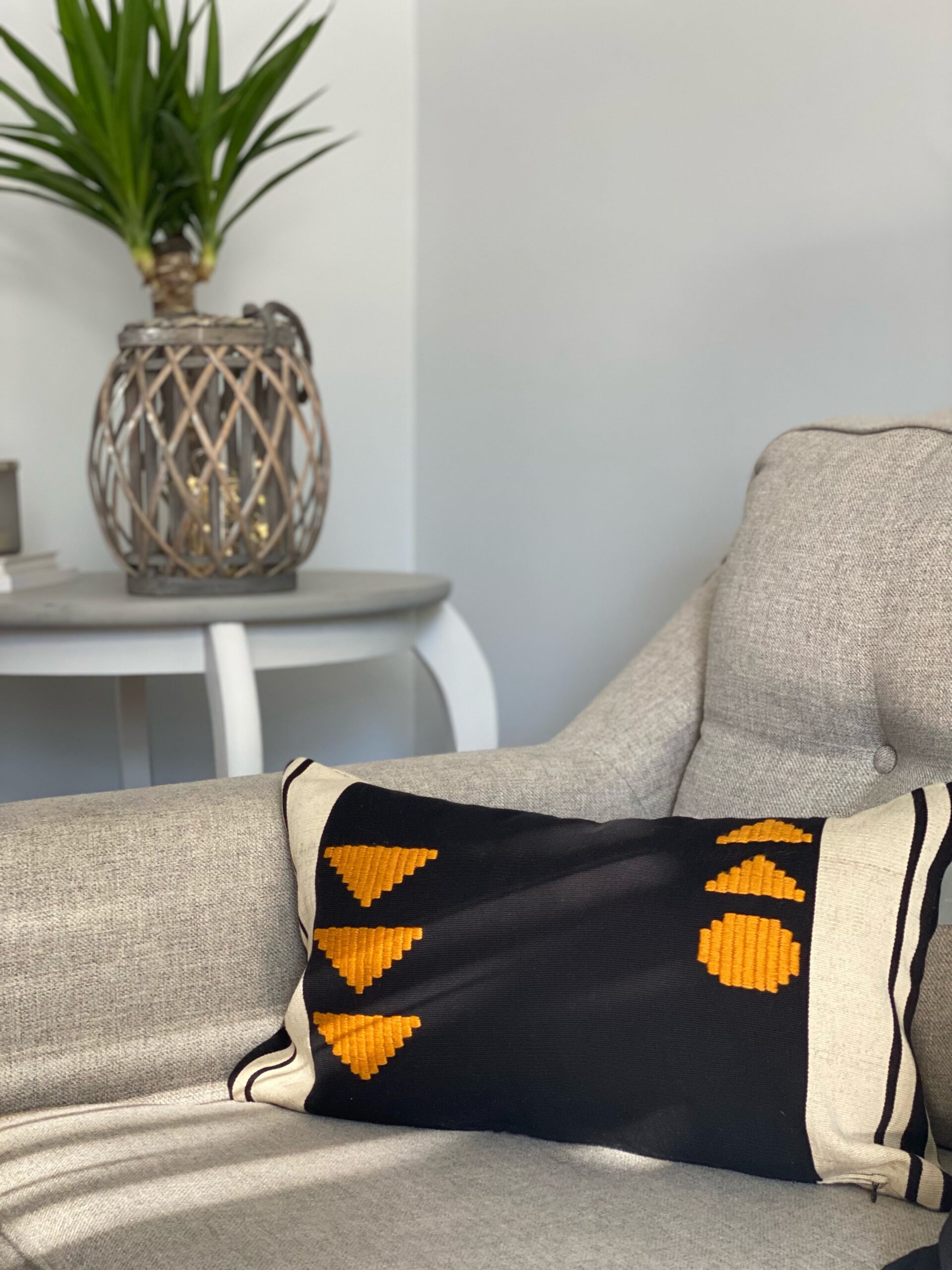 Its geometric unique design, framed by white stripes, brings a visual effect of color accents and balance, being the focal point of the whole decoration of your sofa.
